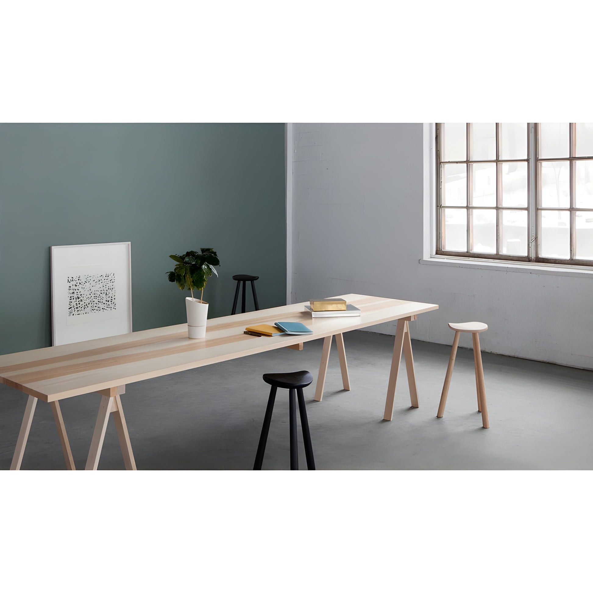 The Arkitecture Table Set includes both the Arkitecture Trestle Legs and Table Top used in conjunction to create a piece capable of fulfilling the needs of workshops, dining rooms, and offices alike.